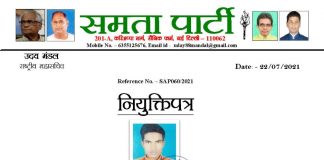 कृष्णा कुमार मंडल बने समता पार्टी के युवा मोर्चा के महासचिव