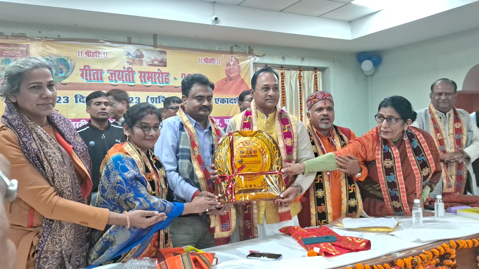 ‘श्रीमद्भगवतगीता आपके द्वार अभियान’ के तत्त्वावधान में मनायी गयी गीता जयंती, गीता-सम्मान से विभूषित हुए डा गुरु एम रहमान ।